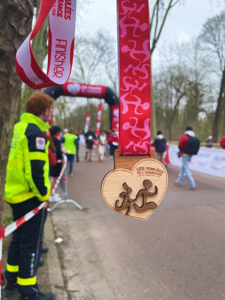 En tout état de cause, les Foulées de l’Assurance fait partie de ces courses que je ne raterais pour rien au monde. Je déteste à peu près tout de cette course : le parcours, la date (pendant le changement d’heure chaque année alors que vous savez à quel point le sommeil est primordial pour l’hyperthyroïde que je suis), la météo (il fait tout le temps gris, à croire que même Mère Nature n’aime pas cette course), mais cette course est au final une de celles qui compte le plus chaque année puisque je la fais grâce et au nom de mon entreprise que j’aime à la folie.
