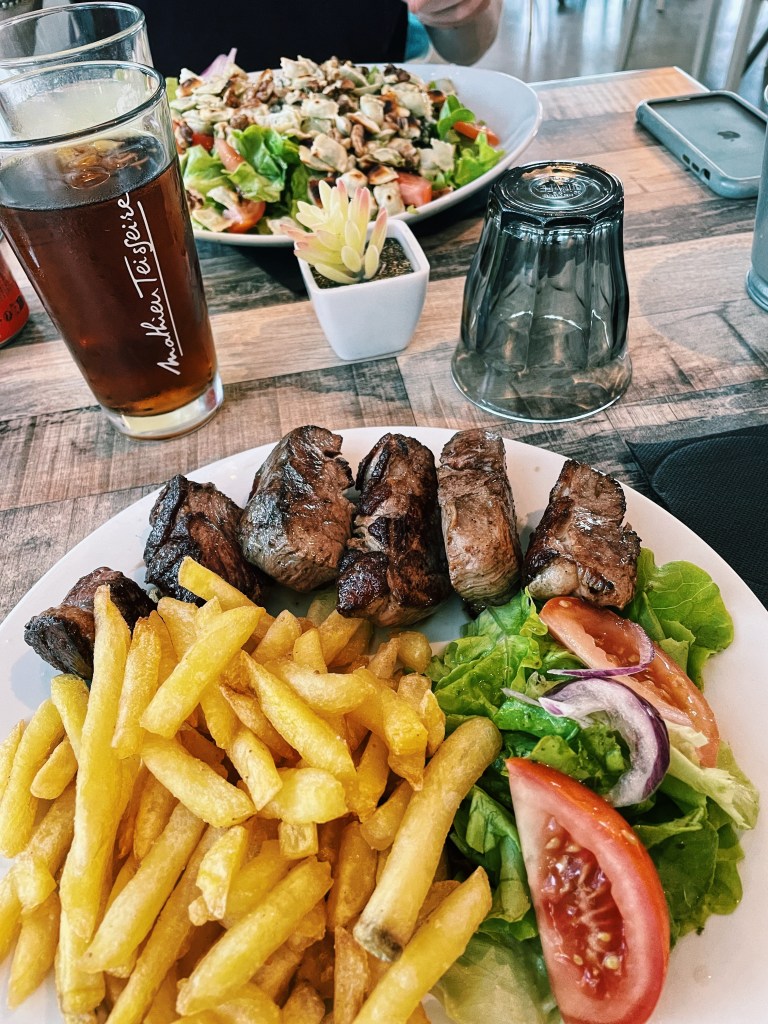 On a décidé d’aller au restaurant. J’avais un appétit de monstre et ai commandé un magret entier en pensant partager un bout avec Alex pour accompagner sa salade jusqu’à finir par le manger intégralement. Mais ce n’est pas tout : j’ai également terminé la salade d’Alex parce que oui la gastro ça coupe l’appétit. Enfin, normalement.
