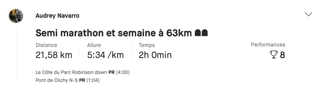 On arrive au semi marathon. Les larmes commencent à monter. Il y a pile un an, j’avais attendu ma belle-mère au moment endroit et j’avais vu à quel point l’ambiance était folle. Je me sens bien en forme. Je trouve ça étrange car à chacun de mes semi marathon, quelle que soit l’allure, j’arrivais en étant morte à la fin. Tant mieux, si c’est comme ça tout le long je vais en faire toutes les semaines des marathons (spoiler : c’est pas comme ça tout le long).