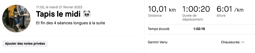 Baptiste me rejoint, initialement pour faire 5 km avec moi (il se retrouvera à devoir finir la course, bichette). Mes parents m’appellent en FaceTime. Tout va bien.